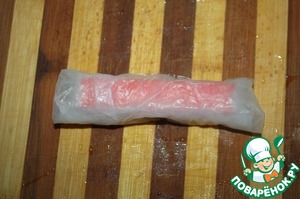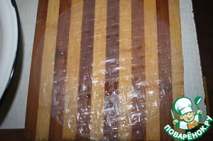 Рисовую бумагу замочить на 20 секунд в теплой воде