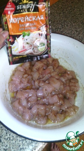 Вообще не соответствует названию. Мешанина какая то. Сейчас по ТВ смотрела как готовят это корейское блюдо