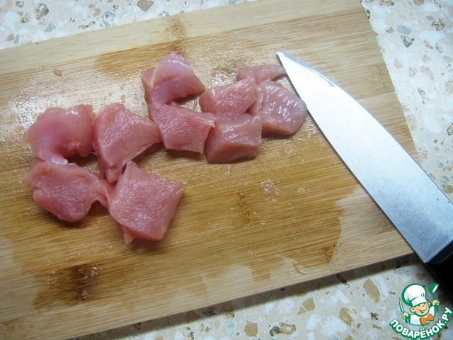 Филе промойте, обсушите и нарежьте небольшими брусками.