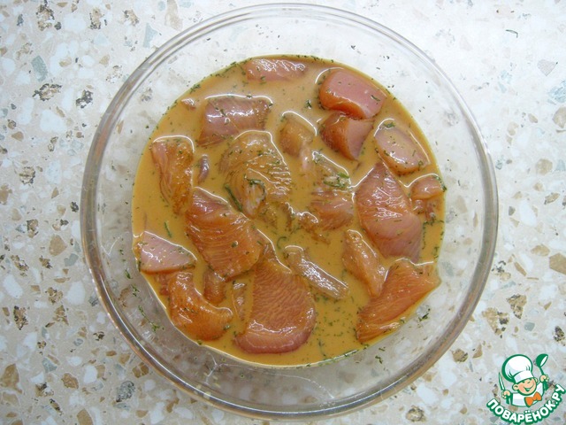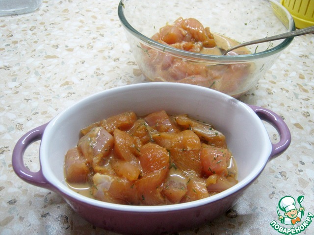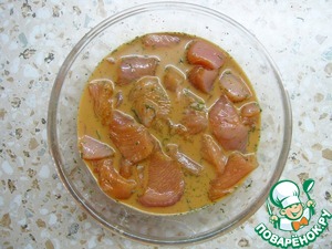 Залейте курицу молоком, соевым соусом и специями по вкусу. Оставьте на полчаса (либо на ночь в холодильнике).