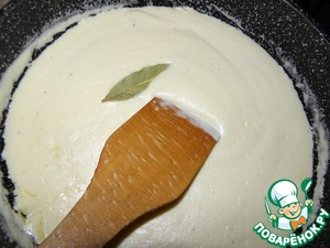 Соус: сливочное масло, на котором жарились котлетки процедить, влить сливки, перемешать, поставить на небольшой огонь. Постепенно добавить плавленый сыр ( если сырки, я тру на терке), затем мускатный орех и лавровый лист. прогреть до загустения.