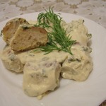 - Сливки (не более 10%!. полтора стакана,немного на хлеб, остальное в соус) — 1,5 стак.