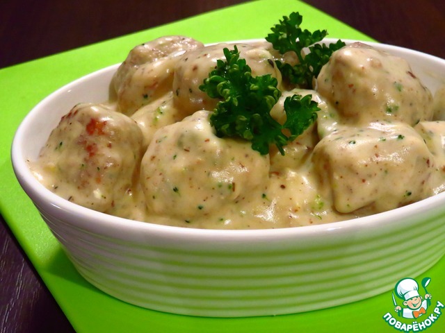 Рецепт «Мясные шарики в сырно-сливочном соусе»: