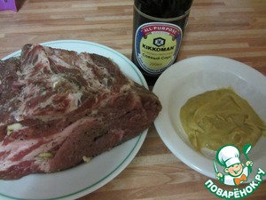 Шпигуем шею черносливом и чесноком. Делаем уколы в мясо острым ножом. В эти подготовленные отверстия, вставить немного чеснока и четвертинку чернослива. Далее смешиваем горчицу и соевый соус " Kikkoman"