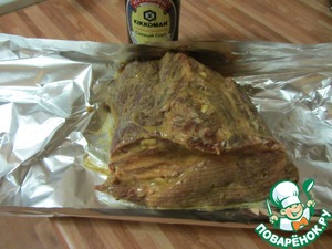 Заворачиваем мясо в фольгу и отправляем в холодильник минимум на 3 часа (я оставляю на 12 ч.)