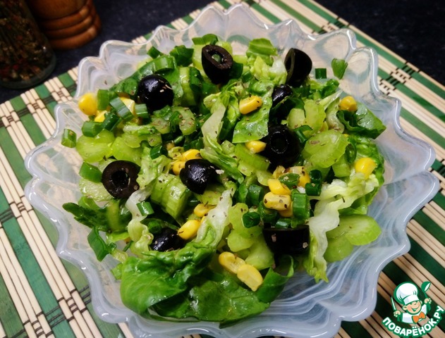 Рецепт «Салат из кукурузы с сельдереем и маслинами»: