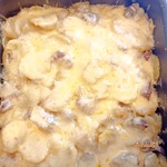 В это время можно подготовить овощи и сыр. Лук нарезаем полукольцами, если небольшой. Если большой, то четвертинками. Картофель тоже кольцами или полукольцами - толщиной около 2-3 мм. Сыр трем на крупной терке.