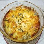 Я не знаю, в чем секрет, но вкуснее это блюдо получается в тонкой металлической форме, в керамике мне нравится меньше. У сыра должна быть румяная, красивая корочка. Наше любимое блюдо готово!