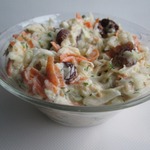 Очень сочный и яркий витаминный салат, который прекрасно гармонирует со сметанной заправкой! Свою незаменимую нотку в салат вносит - изюм! Рекомендую всем без исключения! Это, правда - вкусно!