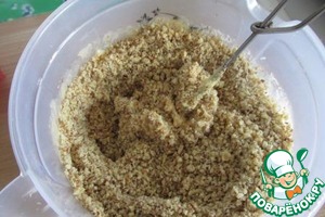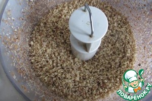 Орехи измельчаем в мелкую крошку. Можно измельчать в среднюю, но тогда пирог будет сильно крошиться.