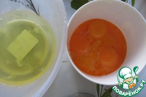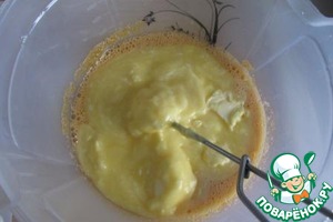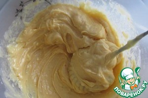 К желтково-сахарной смеси добавляем очень мягкое сливочное масло