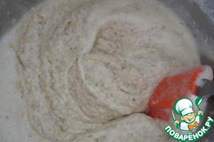 Соединяем взбитые белки с желтково-ореховой смесью. Лопаткой перемешиваем движениями снизу вверх, поворачивая миску по кругу.