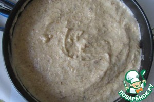 Форму, лучше разъемную, диаметром 20 см (можно взять диаметром побольше) смазываем сливочным маслом и кладем на дно кружок пергамента. Выкладываем тесто в форму и разравниваем лопаткой. Ставим форму в немного разогретую духовку. Выпекаем от 45 минут до 1 часа до пробы на сухую лучинку. Мой пирог из-за небольшой по диаметру формы пропекался около 1 часа, если форма большего диаметра, то пирог пропечется быстрее.