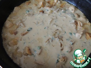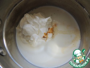 Готовим соус. Смешать в кастрюле молоко, сметану и соевый соус Kikkoman.