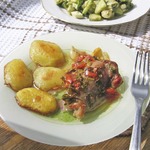 Есть лучше всего безо всякого гарнира со свежим белым хлебом, вымакивая им из латки вкуснейший соус!