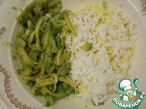 Вареное яйцо и авокадо натереть на терке.
