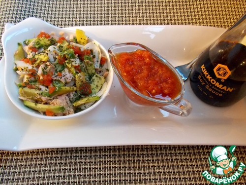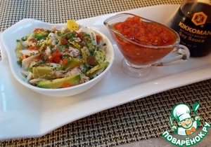 Рецепт «Рыбный салат с авокадо под томатно-соевым соусом»: