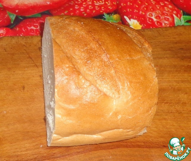 Половину батона разрезаем на две части. Отрезаем "носик" батона, чтобы он был устойчивый.