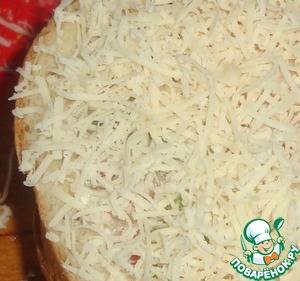 Сверху посыпаем тертым сыром (мелкая терка).