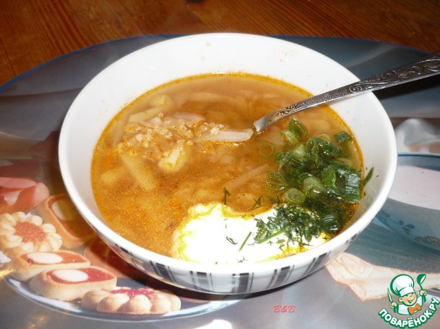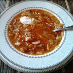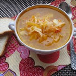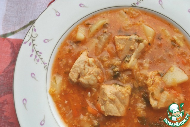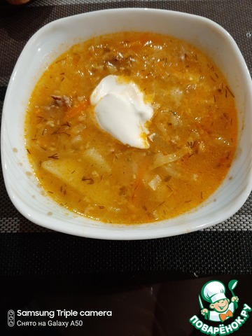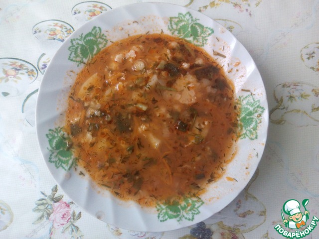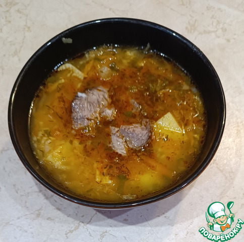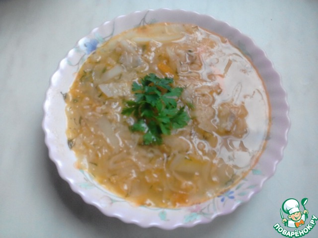 Интересная разновидность щей с пшеном. Суп получается насыщенным и очень вкусным. Можно сварить в постном, вегетарианском варианте на овощном бульоне или воде. А можно сварить с мясом. Сегодня я варила его с мясом. Пост ведь кончился. И с картофелем, так как муж у меня суп без картошки, мягко говоря, не приемлет.