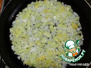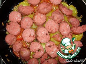 Выкладываем в сковородку слоями остальные ингридиенты в такой последовательности: