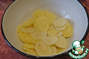 Далее уложить кружочки картофеля,