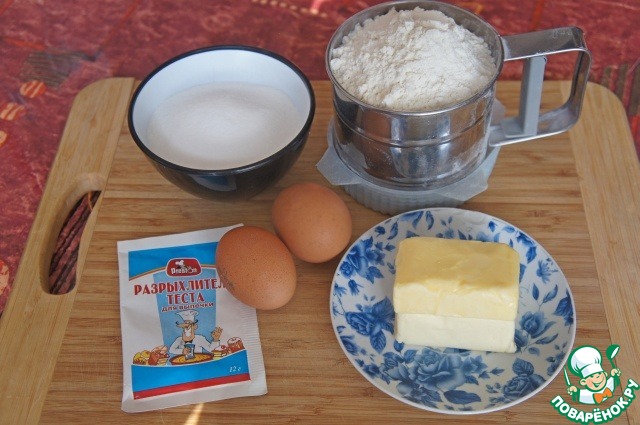 Подготовить продукты для теста. Масло надо заранее вынуть из холодильника, чтобы оно хорошо размякло.