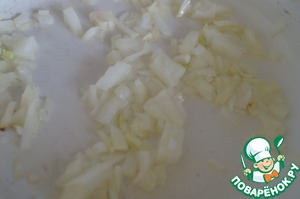 Лук измельчить и обжарить до легкой золотистой корочки на оливковом масле.