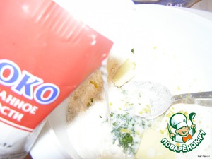 Затем добавить очень мелко нарезанную кинзу, натертую цедру лимона (очень аккуратно, ориентируйтесь на вкус, проявляющийся в тесте), мягкое сливочное масло и влить молоко.