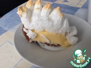 -жидкость после запекания в третьем шаге (безе) выделяется в любом случае, как не охлаждай и какую бы температуру при запекании не выставляй (конечно, я буду еще экспериментировать). Спасибо тем поварятам, кто ранее меня испек пирог!