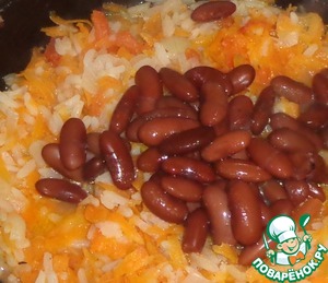 Добавляем отварную фасоль и тушим 5 минут.