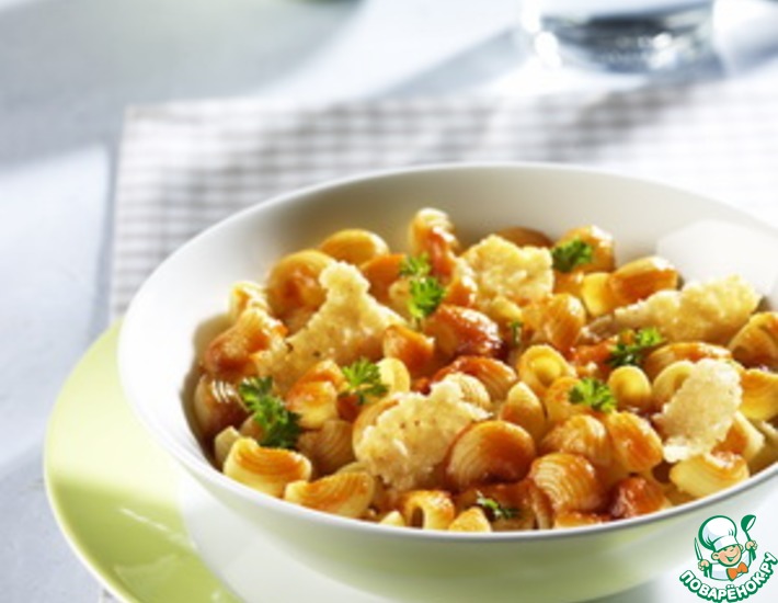 Пипе ригате с чипсами из пармезана и соусом базилико