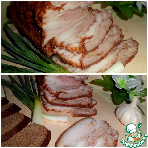 Ингредиенты для «Вареное сало в ореховых перепонках»: