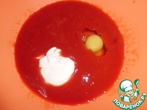 К томатному соку добавить яйцо, соль, базилик и сметану, взбить.