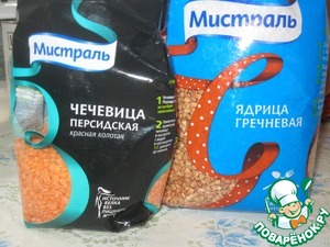 1. Понадобится чечевица и гречневая крупа.
