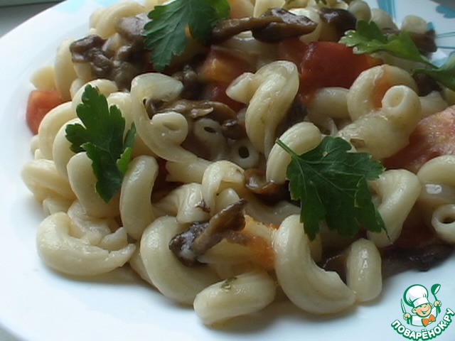 Это блюдо в Италии называется Pasta con funghi e pomodoro ( Паста кон фунги э помодоро). Из всех стран Средиземного моря Италия держит первенство в области кулинарии. Удачное использование всех даров щедрой средиземноморской природы создало шедевры итальянской кулинарии, нашедшие дорогу к сердцам и желудкам многих народов мира. Простота в исполнении, доступность составляющих продуктов, и, может быть самое главное - быстрое насыщение, вознесли итальянскую кухню на вершину мирового кухонного Олимпа. Макаронные изделия различных видов и форм с неисчислимыми сопровождающими их соусами входят в Италии в категорию первых блюд, употребляются в начале трапезы, с практичной и приземленной целью утолить голод, чтобы можно было спокойно насладиться остальными блюдами ( если они есть). Но у людей небогатых они очень часто и были, и остаются и первым блюдом, и последним.