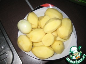 Почистить картофель и одну луковицу.