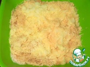 Сверху выкладываем майонез и посыпаем сыром.
