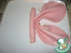 Рецепт «Закуска из вареной колбасы «Бабочка»»: