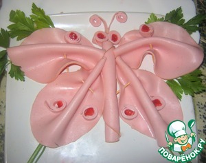 Закуска из вареной колбасы «Бабочка»