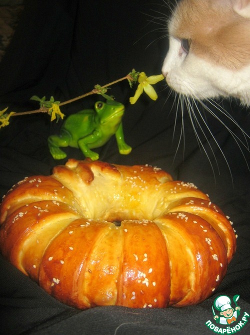 Очень красивый калач, прост в приготовлении, вкусен и ароматен-нежный аромат яблок с изюмом с солирующей нотой корицы... чаепитие будет замечательным-тёплым и душевным. Анюта, для Швеции-с любовью!
