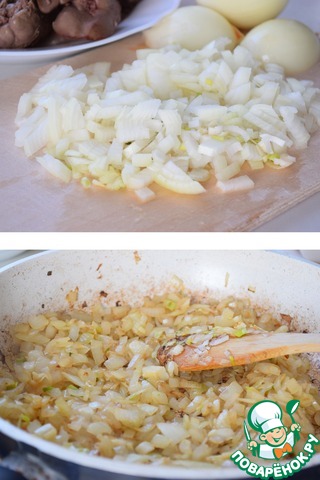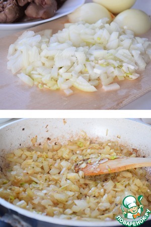 Лук порезать кубиком и обжарить в небольшом количестве растительного масла до слегка золотистого цвета. -