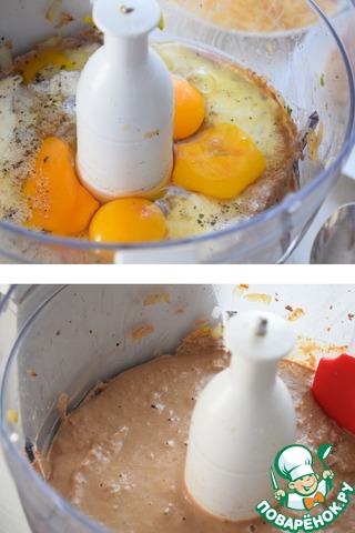 Добавляем яйца, соль, перец, манку и хорошо еще раз измельчаем.