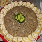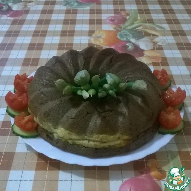 [+5]От себя добавила в печенку морковку, мне подумалось, что с морковкой будет нежнее. Ещё в печеночный слой добавила жирных сливок, получилось нежно-печеночно-сливочно.
