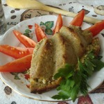 Кстати, муж укроп терпеть не может, поэтому добавила сушеный буквально щепотку, а еще сушеный гранулированный чеснок тоже капелюшку, пекла 25 минут, т к начал было сохнуть. В общем, спасибо вам за такой доступный рецепт огромнейшее!!!!