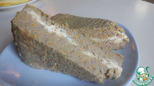 Рецепт найден на просторах Интернета. Хорош как в горячем, так и в холодном виде. Мне и моим родным даже больше понравился именно холодный: хорошо режется и можно тоненько нарезать кусочки и использовать для бутерброда. Получается очень вкусно.