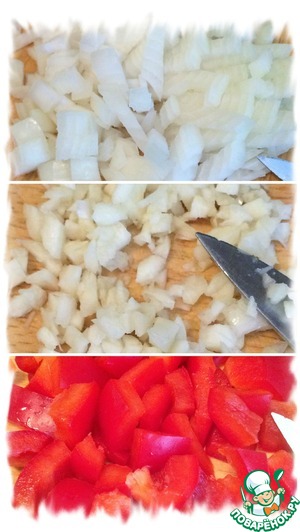Лук мелко порезать, чеснок порубить, перец нарезать кубиками.