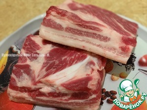 Соли смешать со специями и натереть грудинку со всех сторон;