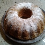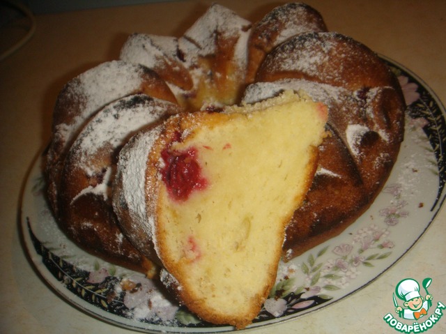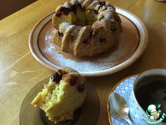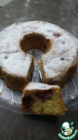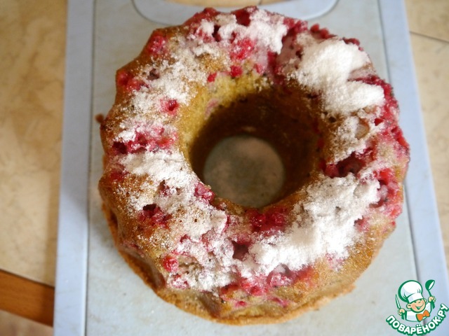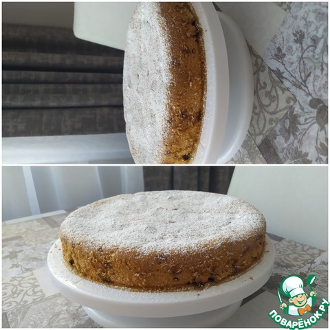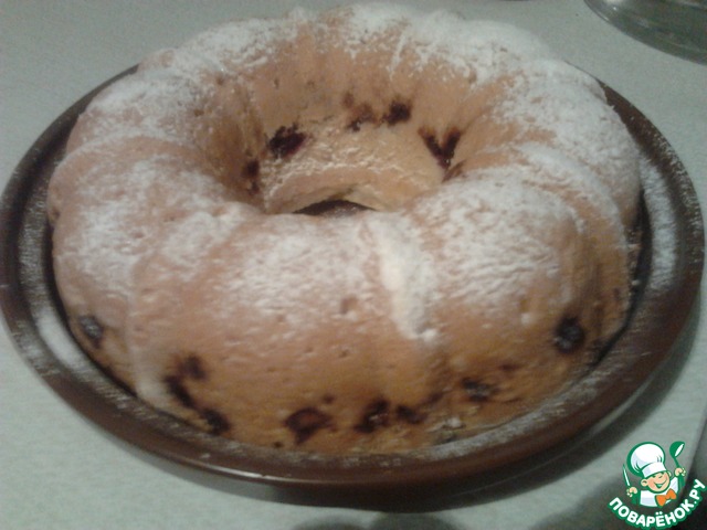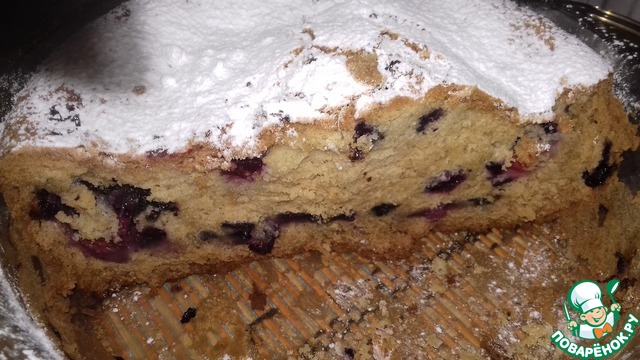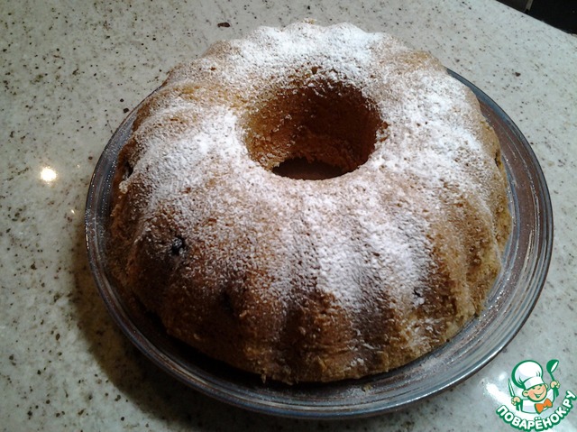 Вынуть кекс из формы и посыпать сахарной пудрой.