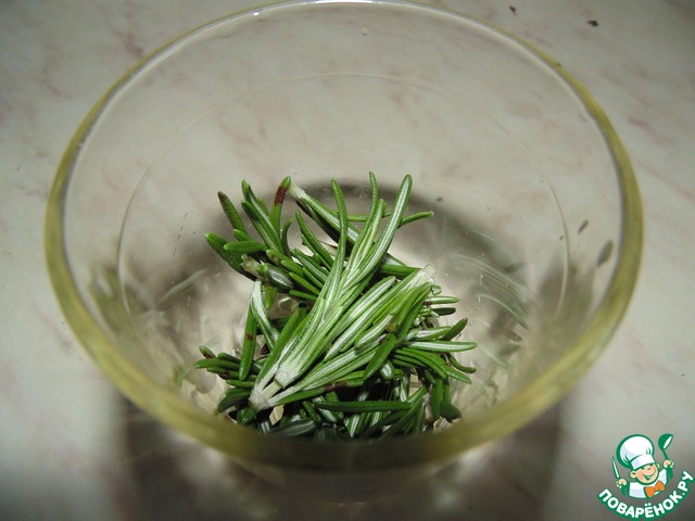 Две веточки розмарина помыть и нарезать на небольшие кусочки.